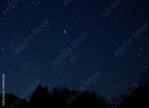 Obraz premium 日本の冬の満天の星空 山間から見た風景