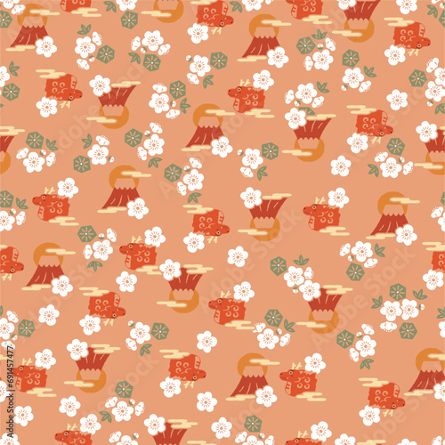 Obraz premium 辰年のシームレスなパターン。日本の伝統的な柄。和柄。縁起の良い柄、吉祥紋、十二支、ドラゴン、正月、元旦、