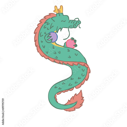Obraz premium 宝玉を持った龍の横顔のイラスト
