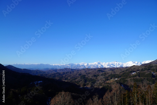 Naklejka premium 冬の大望峠から眺めた北アルプス
