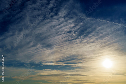 Obraz premium 薄雲が広がる冬空の夕日