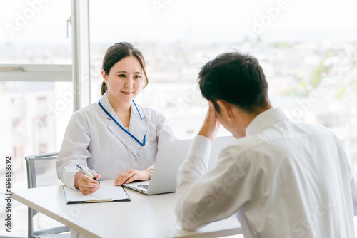 Fototapeta premium 患者の話を聞く女性医師・医者(健康診断・人間ドック・診察・診断・検査)