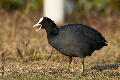 Obraz premium 公園の草をもりもり食べるオオバン