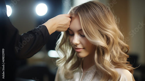 Fototapeta premium スタイリストにヘアメイクをしてもらう女優・モデル・芸能人