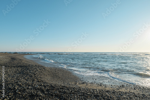 Obraz premium 朝の波打ち際 大洗海岸の風景
