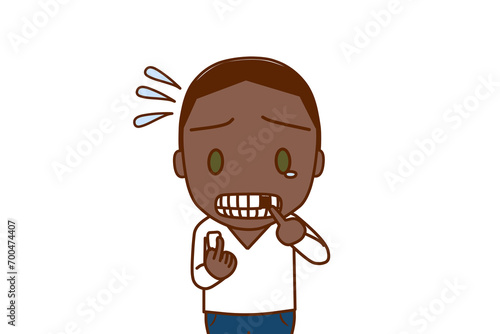 Obraz premium (上半身正面)前歯が折れてしまい涙目で焦っているアフリカ系男性