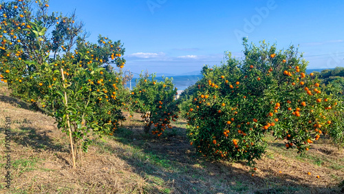 Naklejka premium 美味しい蜜柑が育つ九州の蜜柑畑