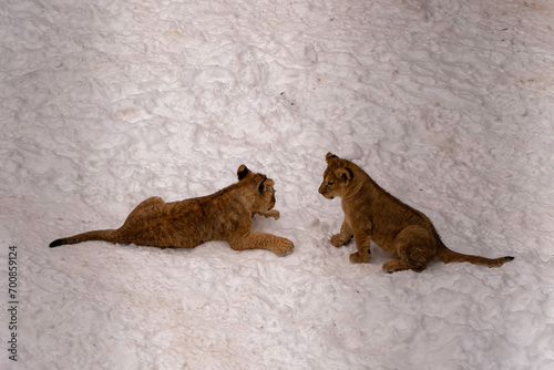 © ANSHIN, Obraz premium 雪の中のライオンの赤ちゃん