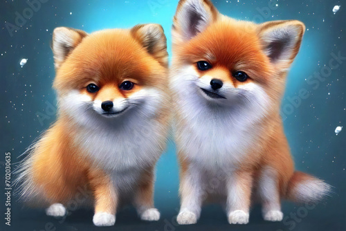 © 月とサカナ SNAO, Obraz premium 二匹の寄り添う子ぎつね