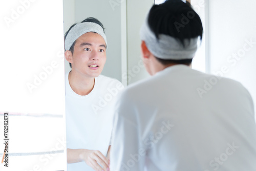 Obraz premium 洗顔をする男性 メンズビューティー コンセプト