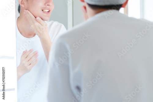 © taka, Obraz premium 洗顔をする男性 メンズビューティー コンセプト