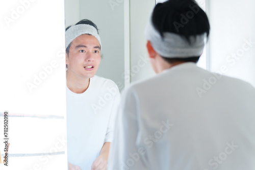 Obraz premium 洗顔をする男性 メンズビューティー コンセプト