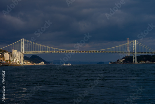Obraz premium 関門海峡の関門橋と連絡船20240101
