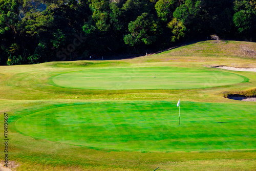 © nsd, Obraz premium 爽やかな青空のゴルフ場・ロングコースの鮮やかなグリーンとコース(神奈川県湯河原町)