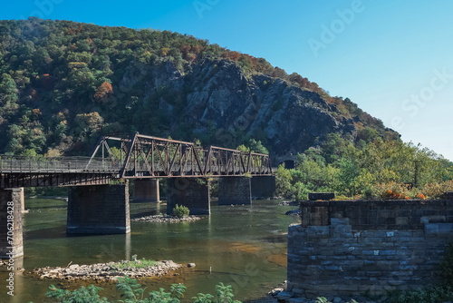 Fototapeta premium 昔の線路の大きな橋と自然の眺め