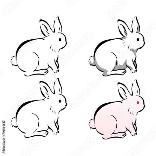 Obraz premium ウサギの和風ベクターイラストセット(線画、影付き、白黒、グラデーション)。