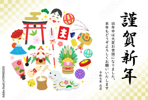 © kisasage, Obraz premium 白蛇とお正月の年賀状