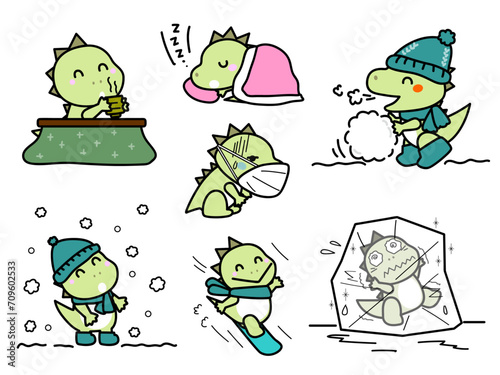 Naklejka premium 可愛い恐竜くんの冬