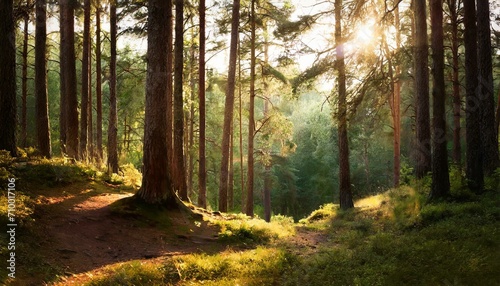 Obraz premium 光が差し込む森