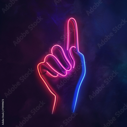 Obraz premium ネオンサイン。上を指す人差し指