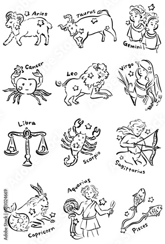 © harako, Naklejka premium 12星座 イラストセット 1色 黒