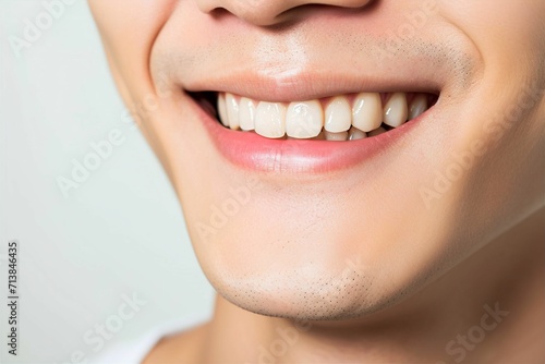 Obraz premium 歯並びの綺麗な笑顔の男性の写真(矯正 ・ 歯列矯正 ・ マウスピース矯正 ・ホワイトニング・ 歯科治療 )