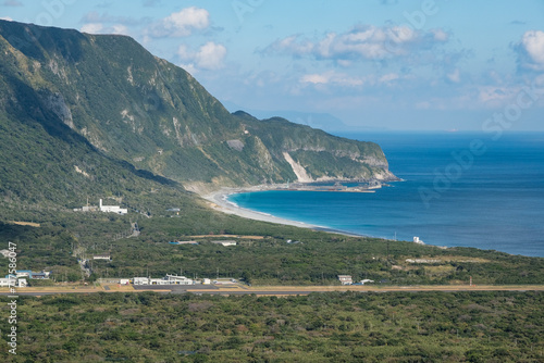 © y.tanaka, Obraz premium 大峰展望台から眺める新島空港の滑走路