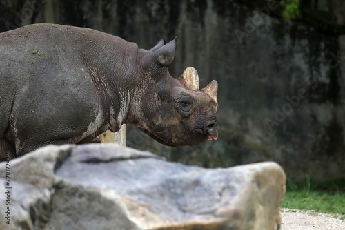 © osaru_photos, Fototapeta premium 雨に濡れたクロサイのポートレート