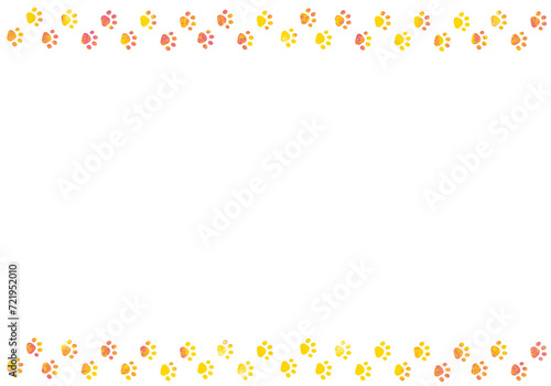 Obraz premium 黄色とピンクのねこの足跡のフレーム クレヨンタッチ