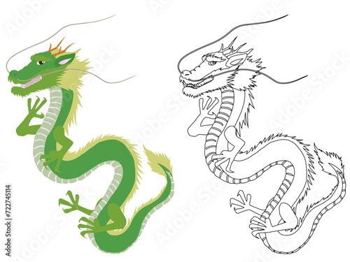 © 市佳, Obraz premium 龍のイラストと線画のセット