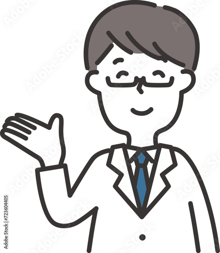 Obraz premium 白衣を着た男性がこちらと案内するイラスト