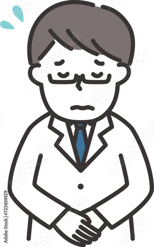 Obraz premium 白衣を着た男性が困り顔で謝罪をするイラスト