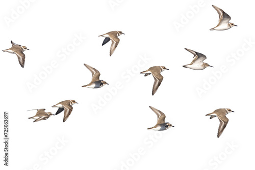 Fototapeta premium 飛翔するシロチドリとハマシギの切り抜き画像