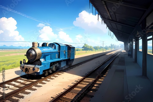 Obraz premium 異世界田舎の駅舎とディーゼル機関車の風景