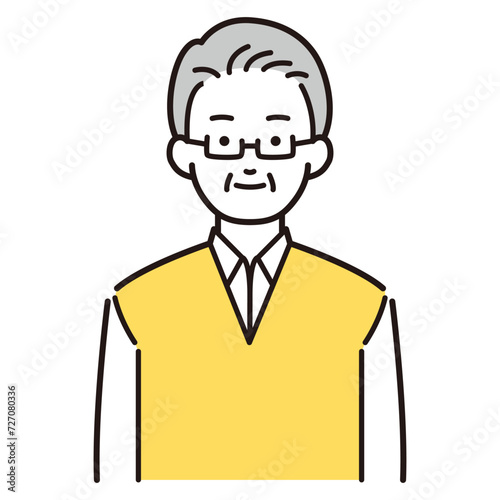 © WAWAWA, Obraz premium 正面を向いたおじいさんイラスト
