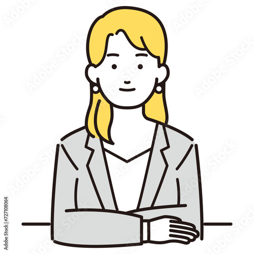 © WAWAWA, Obraz premium 椅子に座るスーツを着た女性イラスト