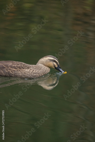 © pespiero, Fototapeta premium 日本 岩手県一関市を流れる砂鉄川沿いの渓谷、猊鼻渓を泳ぐ鴨