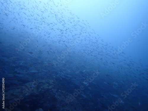 © Signyamo, Obraz premium 青い海を泳ぐ沢山の魚の群れ(須江/内浦ビーチ)