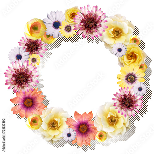 Obraz premium 華やかな色とりどりの花で作ったボタニカルリース