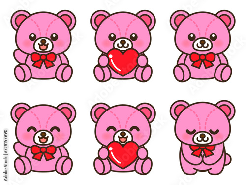 © kiko, Naklejka premium かわいいテディベアのぬいぐるみのイラスト素材セット