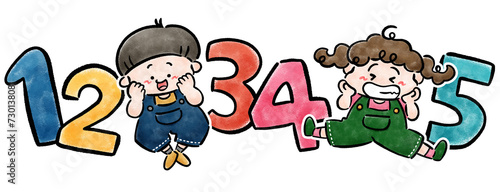 © かがわ ころも, Fototapeta premium 数字と子どものかわいい手描きイラスト素材