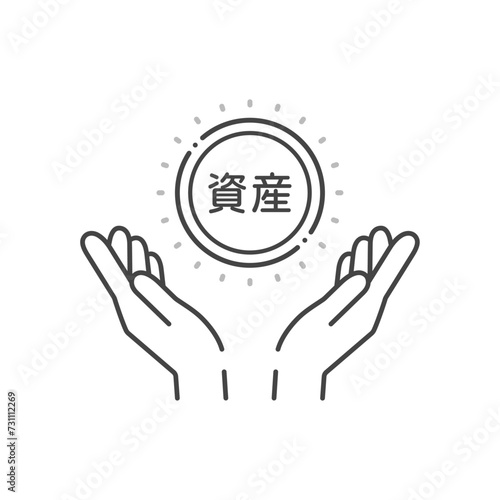 © Spica, Obraz premium 資産の文字とコインを持っている人の手のアイコン - シンプルな資産形成のイメージ素材