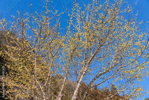 Obraz premium 青空に映える満開の黄色い蝋梅の花