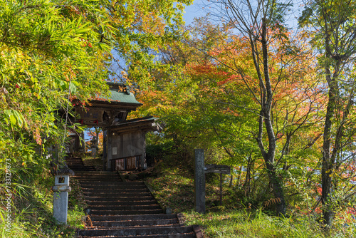 © pespiero, Fototapeta premium 日本 福島県河沼郡柳津町にある福満虚空蔵菩薩、円蔵寺の福満門と紅葉