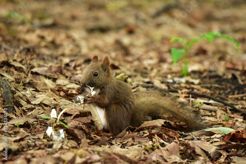 Fototapeta premium キノコを食べる子リス