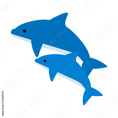 Obraz premium シンプルなかわいいイルカのイラスト 親子