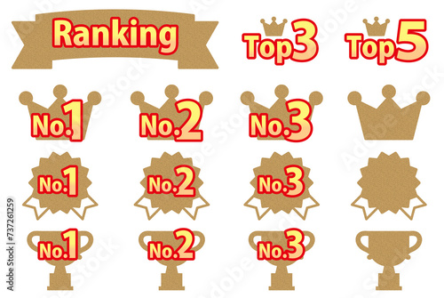 Obraz premium 王冠などのランキング3位までのアイコンセット_コルク模様