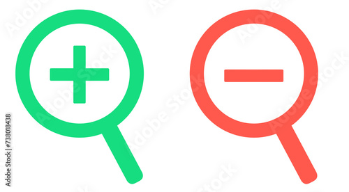 Fototapeta premium 緑色と赤色|拡大と縮小の虫眼鏡アイコン