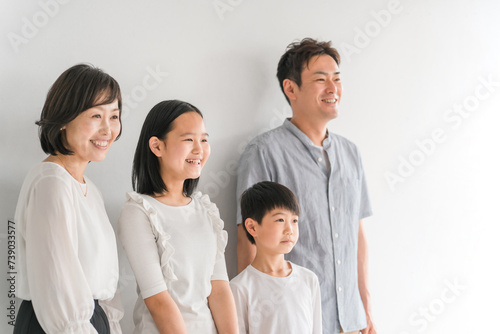 © buritora, Fototapeta premium 笑顔の仲良しアジア人家族(親子・姉弟・4人)