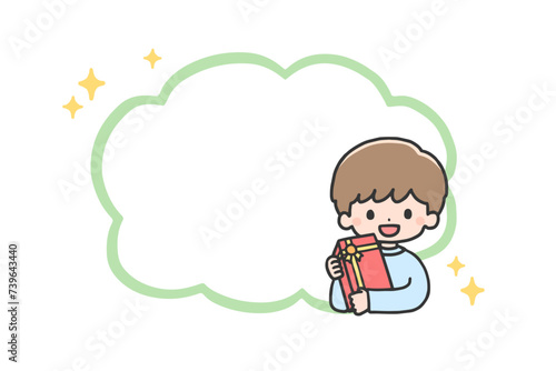 © 春田みつき, Obraz premium プレゼントを持つ笑顔の男の子